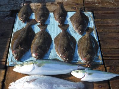 前も後ろも右も左も子ヒラメ・マゴチをタモですくったらレジャー船